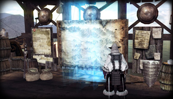 您可以在村庄里按住“ALT”获取建筑物的指示。或者查看小地图,乘船台就在村子的外面。走到码头前的乘船台后,会自动弹出乘船台界面,提示您创建战船。