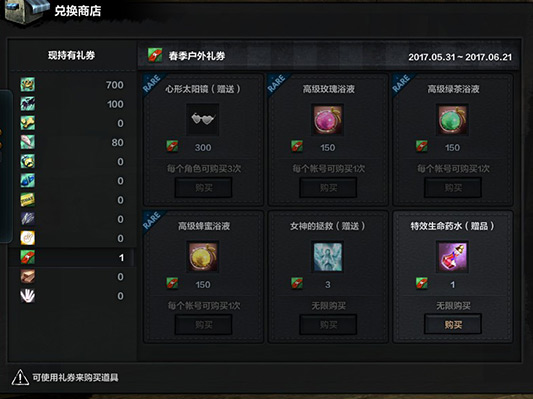 户外礼券可前往兑换商店进行奖励兑换。
