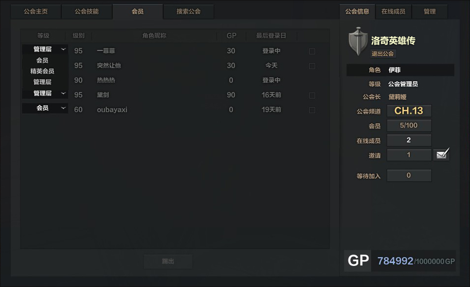 - - 变更公会成员等级,最高等级可变更至管理员